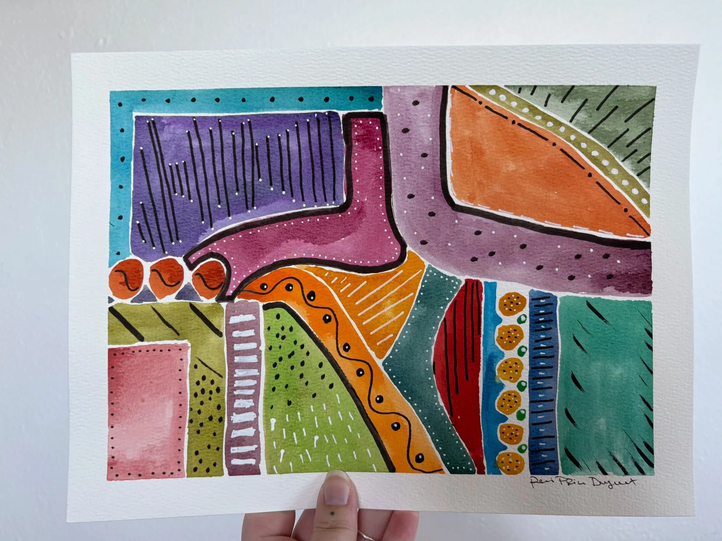 Every piece is completely original—no prints, no reproductions—just authentic, handcrafted art that captures a moment of inspiration. Her paintings often dance between spontaneity and structure, where vibrant pigments flow freely yet purposefully on the page.